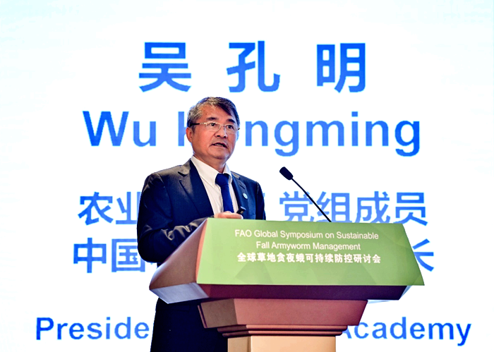吴孔明表示,草地贪夜蛾是全球面临的共同问题和挑战。中国政府在遏制草地贪夜蛾暴发成灾和防控方面取得良好成效和经验,实现了“虫口夺粮”保丰收的目标。中国农科院专家和科研团队积极参与联合国粮农组织启动的“全球草地贪夜蛾防控行动”,开展中国-联合国粮农组织南南合作项目,加强国际合作与交流,分享中国在草地贪夜蛾监测预警平台、综合防控技术集成示范等方面的经验做法,探索和推广适应不同地区的可持续防控技术和管理模式,共同保障全球农业的可持续发展。中国愿与各方继续巩固已有合作平台,不断创新合作机制,以更加开放的态度,与国际社会一道防控草地贪夜蛾,为全球植物保护事业发挥积极作用。