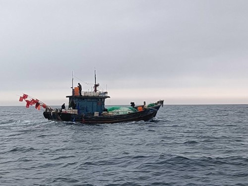 2024年5月4日,山东省海洋与渔业执法监察局海洋维权支队在北纬36°23.708′,东经122°11.434′查获一艘船艏标写“鲁荣渔养69346”船名号的木质渔船,该渔船现扣押在荣成市人和渔港。